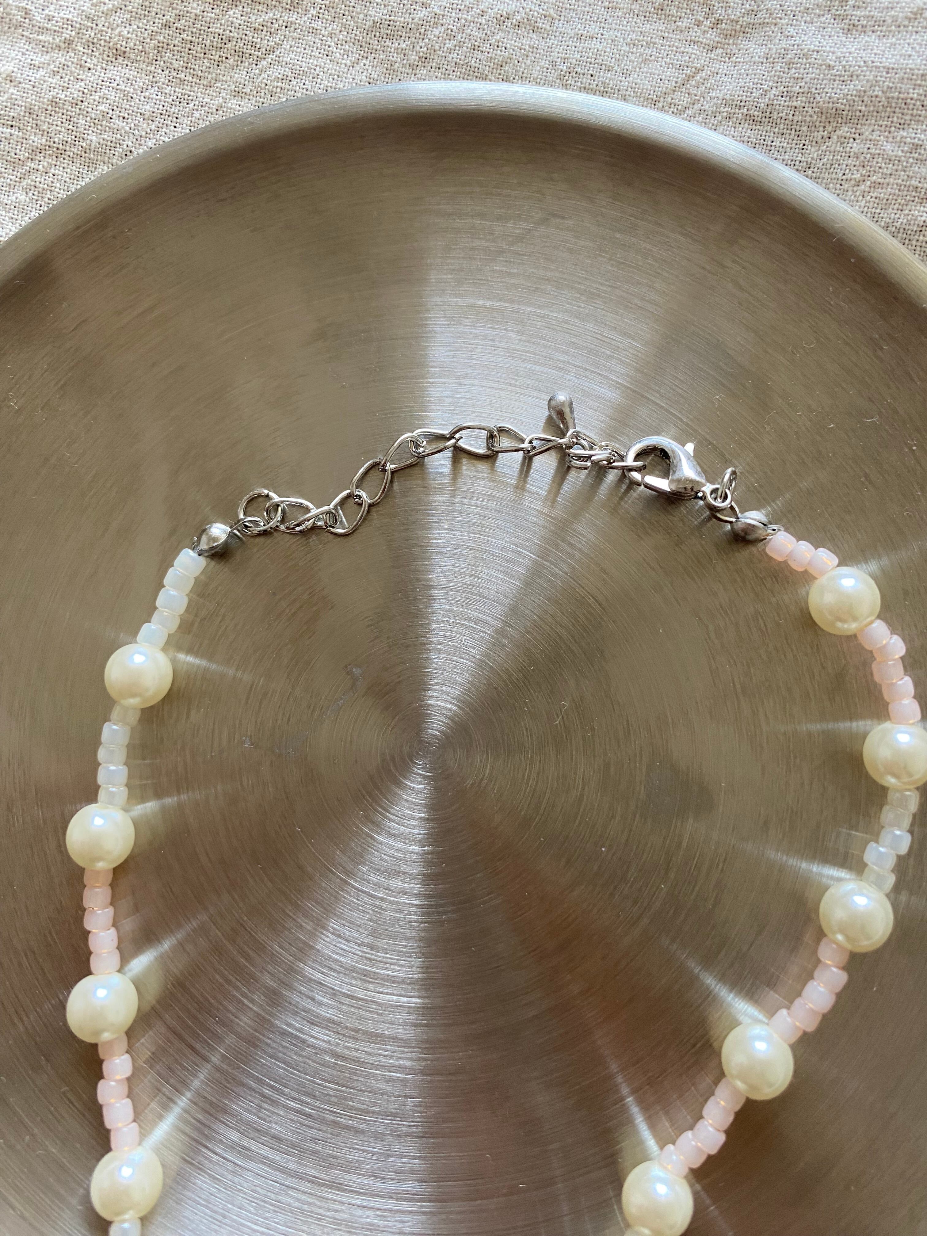 大ぶりなビーズ×ピンク×ホワイトのビーズでとびっきり甘めなデザイン♩
